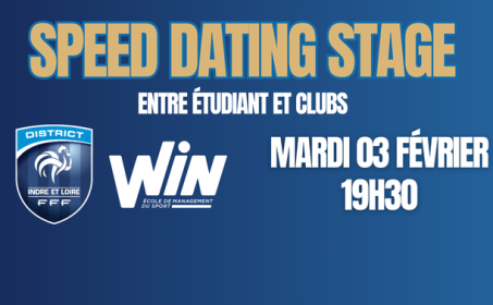 Dans le cadre du tirage des coupes masculines et féminines jeunes, organisés par le District, un speed dating stages entre étudiants et clubs sportifs aura lieu prochainement à WIN Sport School Tours.